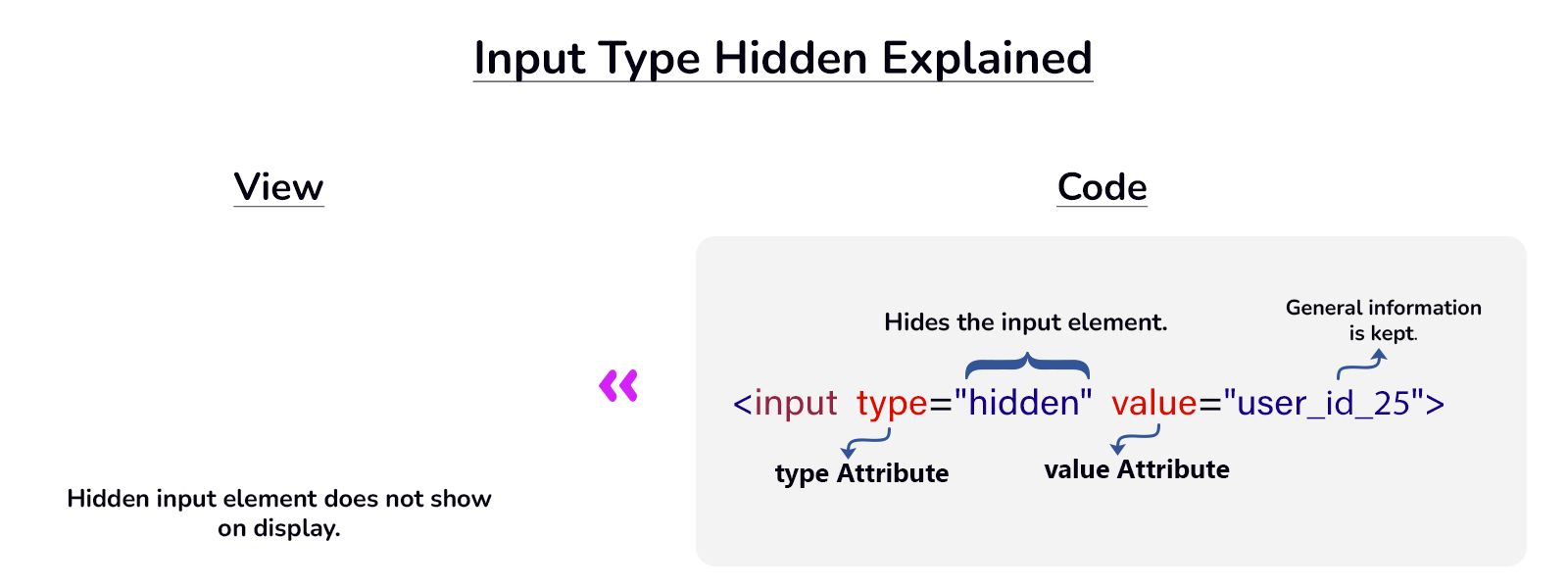 Input type="hidden" does not display the input element. So that the user cannot examine or manipulate the value of the input element.
